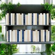BookStyled Natural parchment bound spines with a touch of modern hardbound books in varied blue tones for a very clean look. Book covers vary.- 24 books / 8.5-9.5" To order, please visit our BookStyled website: Available here: 24 Vol. Natural parchment bound spine…