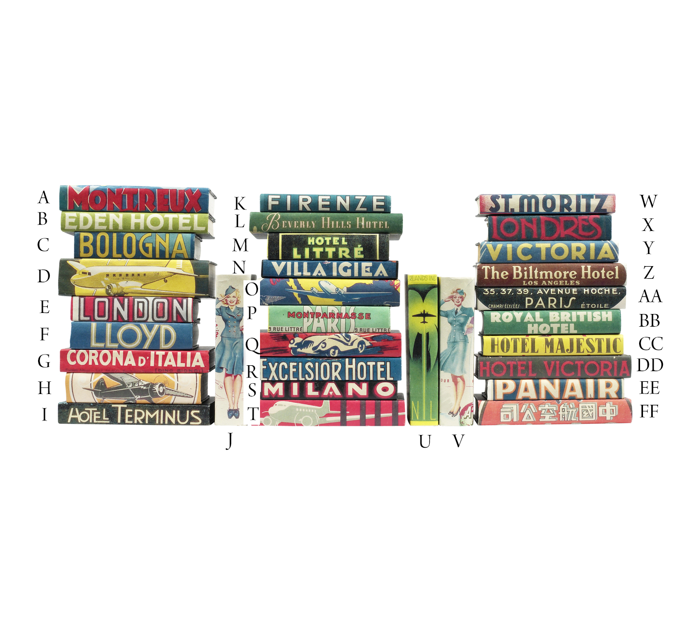 World travel series inspired by vintage hotel luggage decals. May be specifed or random assortment.(By the Book)